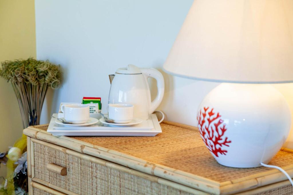 The restaurant serves Mediterranean cuisine with fresh fish and homemade pasta. Cocktails, drinks and ice creams can be enjoyed at the sea-view bar.
