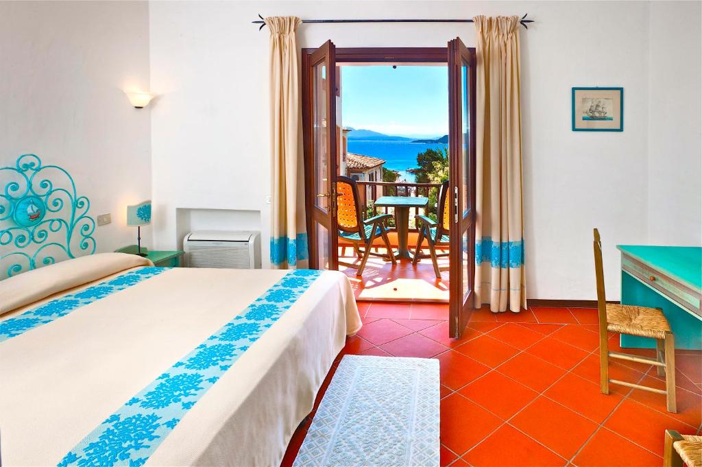 Rooms at the Capriccioli Hotel are decorated with whitewashed walls and tiled floors. Each comes with air conditioning and a laptop safe, and some rooms feature Tyrrhenian Sea views.