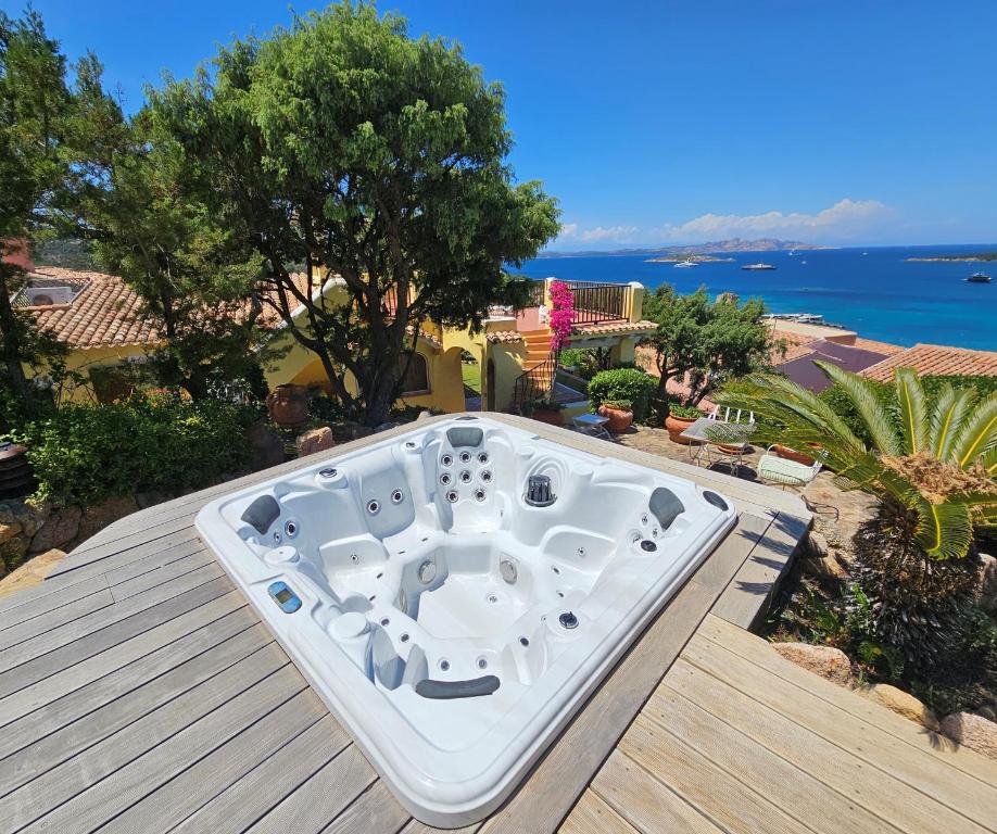 A 14-minute walk from Spiaggia Pitrizza in Porto Cervo, Villa TEA Costa Smeralda - Porto Cervo provides accommodations with access to a solarium and open-air bath. Free Wifi is featured throughout the property and private parking is available on site. The vacation home offers a pool with mountain views, hot tub, and a 24-hour front desk.